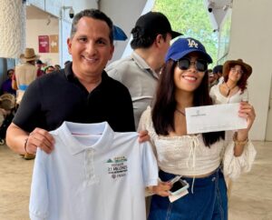 “Bienvenida Dulce, me da mucho gusto que hayas decidido, junto con tu familia, venir a Yucatán y a Chichén Itzá. Aquí recibimos a los turistas con lo mejor que tenemos, empezando con nuestra hospitalidad, siéntete como en casa”, expresó Jorge Carillo, al entregarle la camiseta conmemorativa con los logotipos de CETUR y el INAH y una cortesía de hospedaje y alimentos en el hotel El Conquistador.