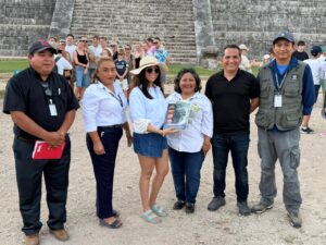 Personal del INAH le obsequió guías y libros sobre Chichén y la cultura maya a la joven bióloga y el evento concluyó con una visita guiada a la zona arqueológica y al Museo, a cargo del arqueólogo José Arturo Cortez Gutiérrez, encargado del área de Protección Técnica de Chichén Itzá.