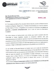 Hoy presentamos en la JUCOPO un oficio para que todas las sesiones y reuniones en San Lázaro vuelvan a ser presenciales, porque representar es estar presentes.
